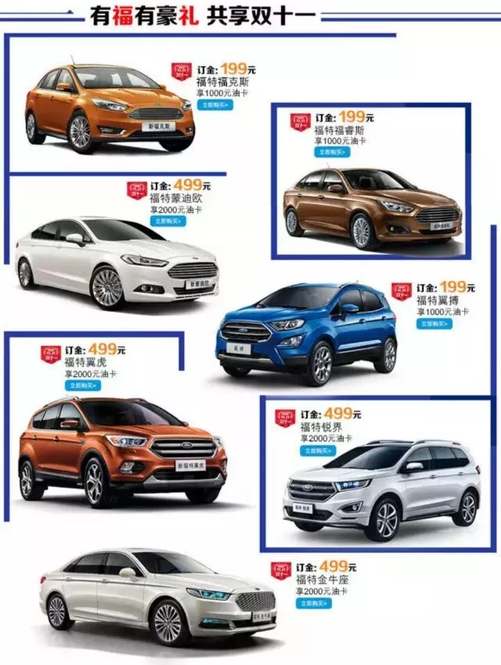 1000名在天貓福特汽車(chē)官方旗艦店下單
