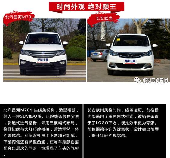 愛美之心人皆有之。當汽車工藝日臻完善后,顏值也成了購車首要考慮因素之一。作為MPV界的顏值擔當,長安歐尚和北汽昌河M70略有不同。長安歐尚線條平直,從車頭到車尾,從車身到細節(jié),都透著簡約干練。而北汽昌河M70則線條銳利,無論是車頭的鏟型凸起保險杠,還是側身的多型凌峰設計,甚至車尾多維型面造型,都帶來豐富的層次感,讓整車看起來更硬朗逼人,大氣時尚。?