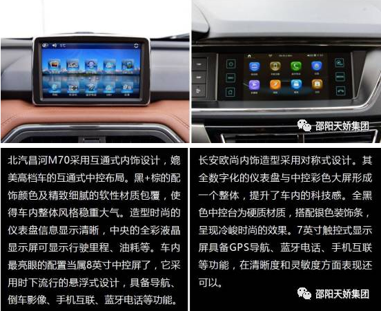 買車看配置,應該是常識。同為自主品牌,長安歐尚和北汽昌河M70在配置不分軒輊,但如果你關注細節(jié),就會發(fā)現(xiàn)不同。長安歐尚的內(nèi)飾造型采用全黑中控臺+7英寸顯示屏+全數(shù)字化儀表盤,整體看來冷峻時尚并富有科技感。而北汽昌河M70采用黑+棕的時尚雙色配飾,儀表盤和液晶屏在信息顯示上也更加清晰。而更搶眼的是位于中控臺頂部的8英寸中控屏,不僅集成GPS、倒車影像等功能于一身,超大超清晰的屏幕顯示也讓駕駛者查看更加方便,讓行駛更加安全。