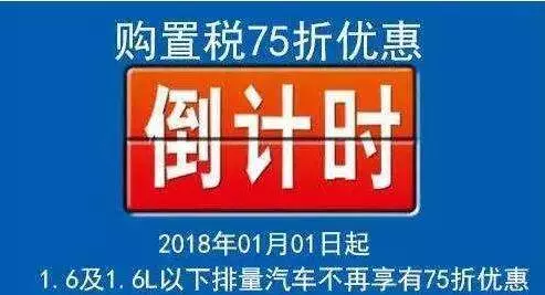 距離2017年12月31日購(gòu)置稅減免25%