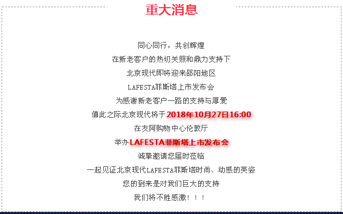 北京現(xiàn)代LAFESTA(菲斯塔)上市發(fā)布會(huì) 盛邀您參與