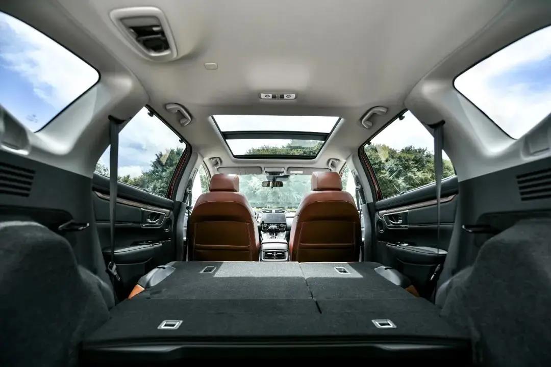 “空間魔術(shù)師”的光榮傳統(tǒng)在每一代CR-V上都得到了延續(xù),新CR-V也是如此。雖然沒有折疊桌,但后備廂地板支持兩段高度調(diào)節(jié),低位可以增加一定儲(chǔ)物空間,高位與放倒后的后排座椅持平,后排就成了一張平整的“大床”。后排座椅完全放平后1870mm的縱深和1050mm的寬度躺倆人毫無壓力。帶上充氣床墊,可以隨時(shí)來一次走哪兒睡哪兒的長(zhǎng)途自駕之旅。即便囿于都市,這功能也能讓你抽空躺平。有個(gè)朋友周末送娃上各種課后班,中途回家的話時(shí)間都耽誤在路上,抽空在車?yán)锾梢粫?huì)兒就美得很,他就對(duì)CR-V的這個(gè)設(shè)計(jì)贊不絕口。