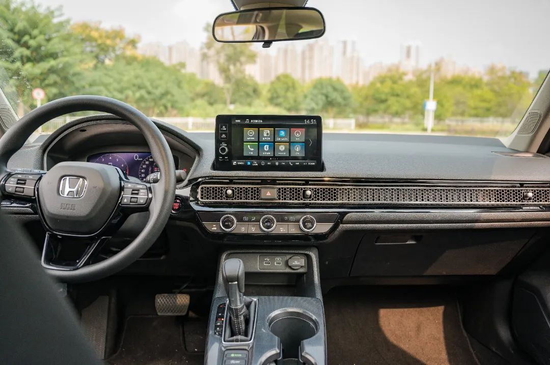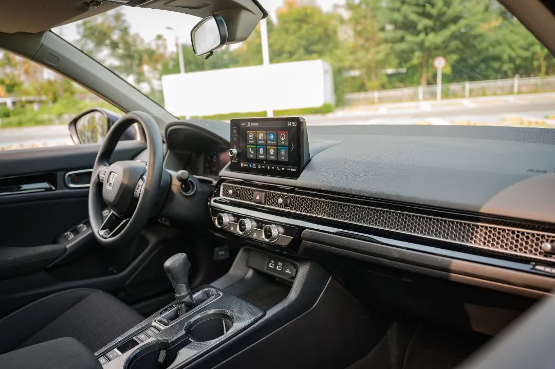 思域貫穿中控臺的蜂窩狀格柵也是很吸引眼球的,風(fēng)格大氣,后面還隱藏了空調(diào)出風(fēng)口,特別有質(zhì)感,看得出用心了。